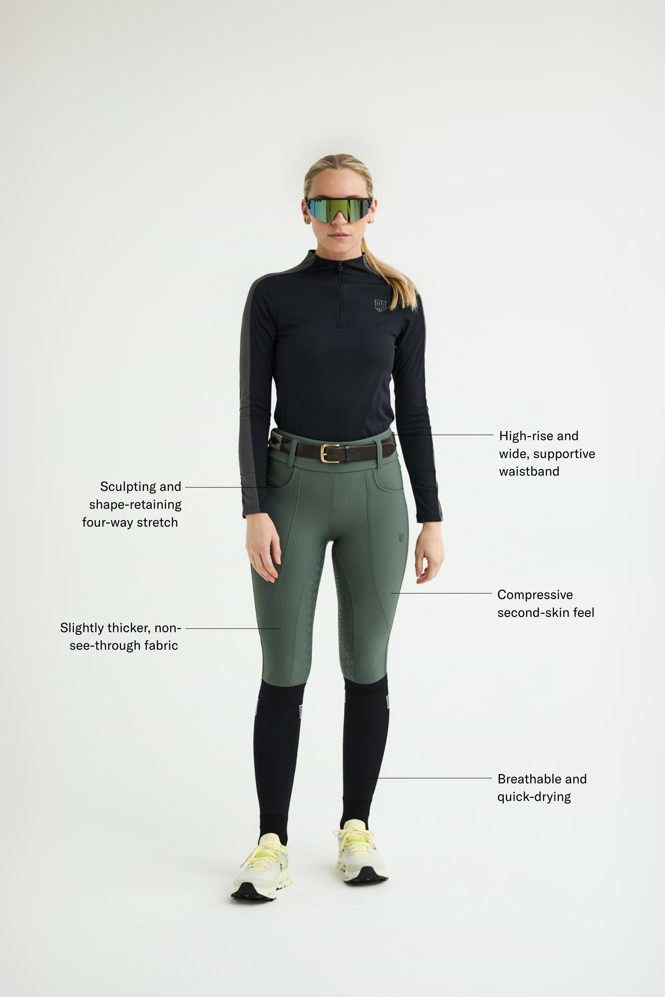 Nos pantalons d'équitation Compression sont conçus en tissu stretch quatre sens pour une coupe sculptante et gainante à chaque foulée. Grâce à ses fonctions sportives révolutionnaires, cette série combine magistralement flexibilité moderne et gainage sculptant. Approuvé par les meilleurs cavaliers dans le monde entier.